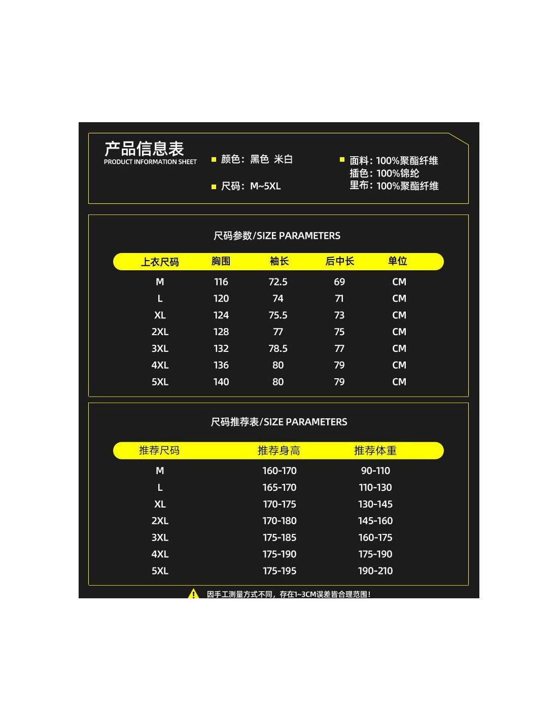 • Note: There might be an error of 1-3 cm due to manual measurement, and slight color differences may occur as a result of varying lighting and monitor effects.