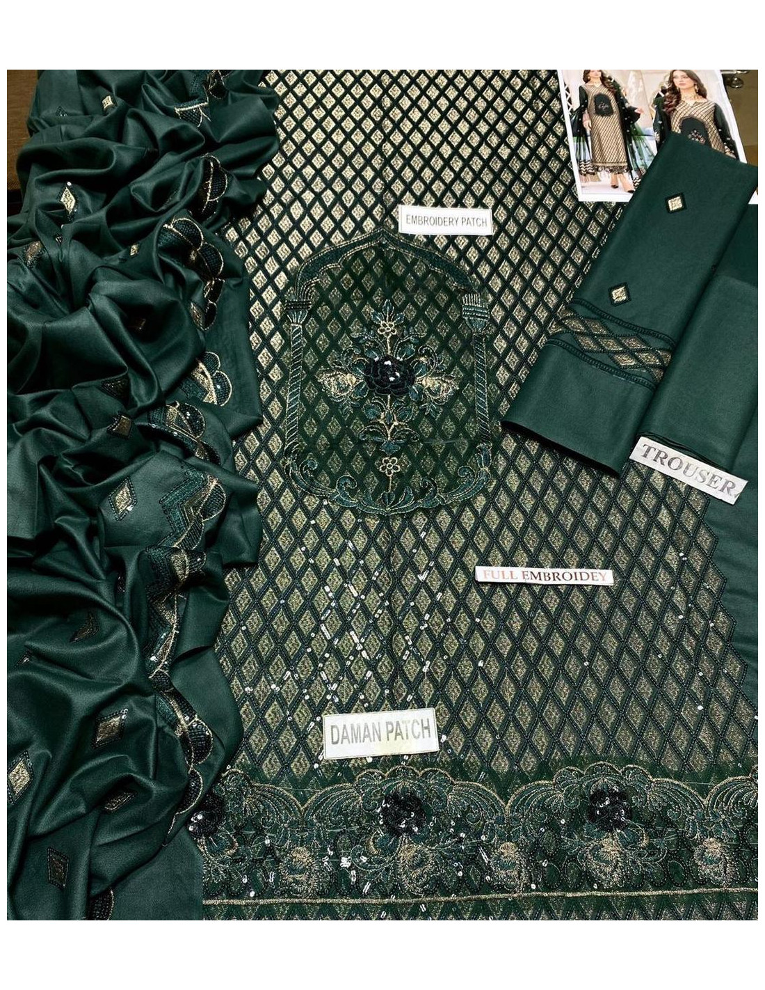 Is Dhanak Embroidered Unstitched Salwar Suit for Women - 3 Piece Set ko aap apne kisi bhi vishesh avsar ke liye pehen sakti hain. Is suit ki sundarta aur aakarshan aapko sabse alag aur sundar bana dega.