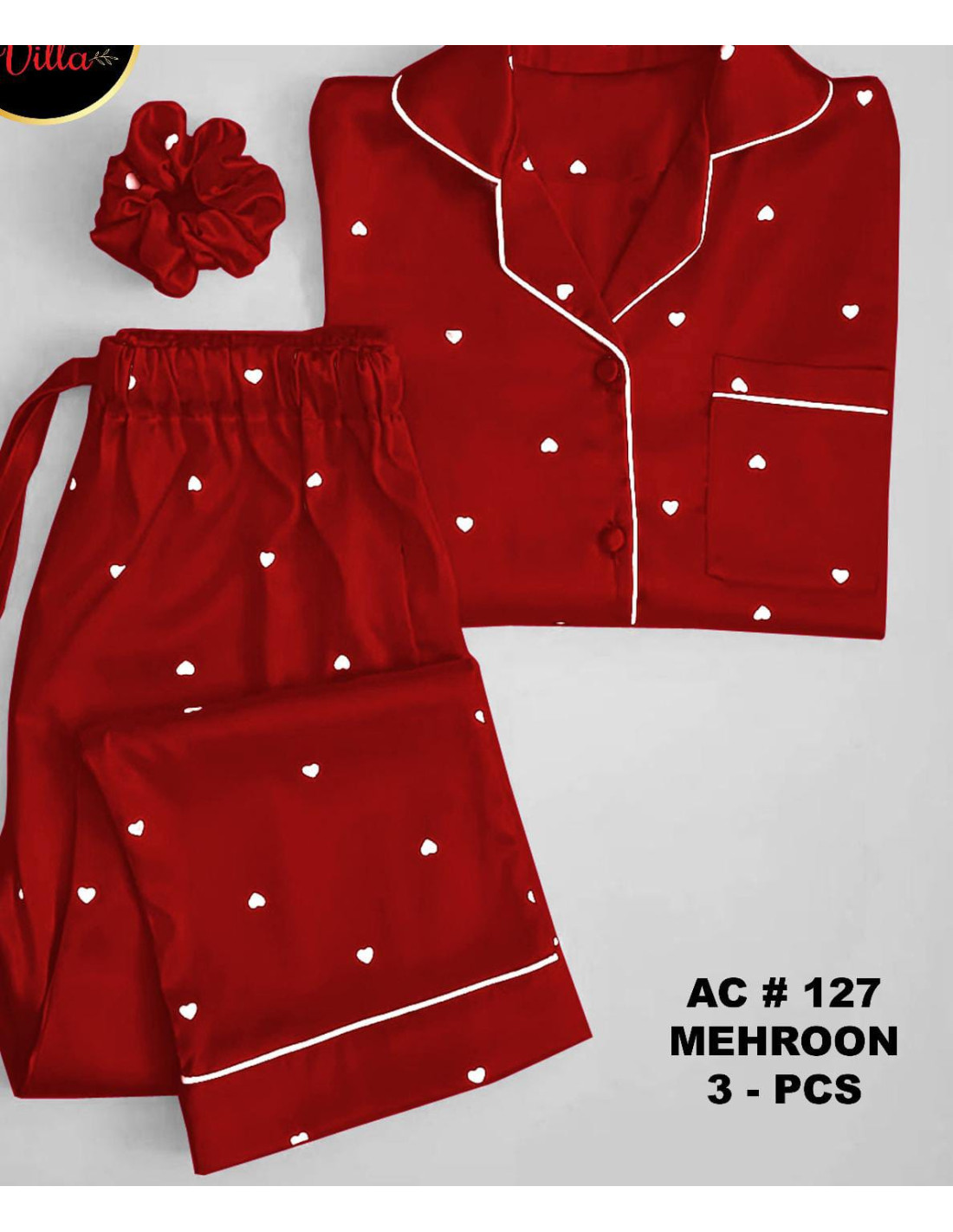 Silk night suit for women With Ponytail
